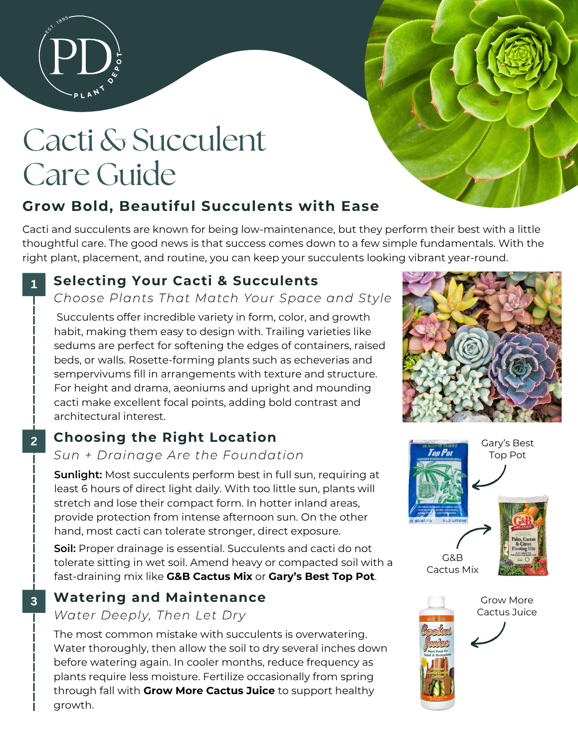 Cacti and succulents are known for being low-maintenance, but they perform their best with a little thoughtful care. The good news is that success comes down to a few simple fundamentals. With the right plant, placement, and routine, you can keep your succulents looking vibrant year-round. Download our guide to learn more!